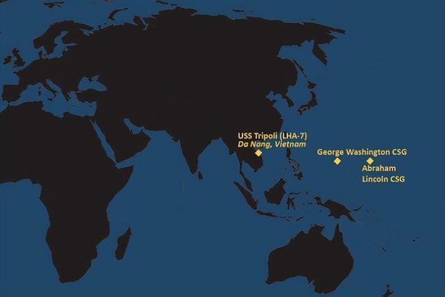 (12月8日美军航母和两栖攻击舰位置图,华盛顿号在关岛)