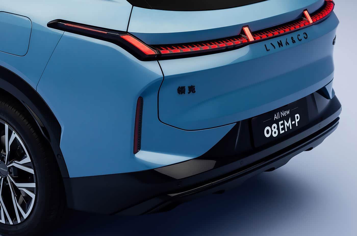 尾部依旧是贯穿式灯组的设计,中间还有两个向上凸起的设计,夜间辨识度很高。中间则是领克品牌的英文标识,上方还有扰流板,搭配尾门上内凹的设计,整个尾部的层次感非常强。